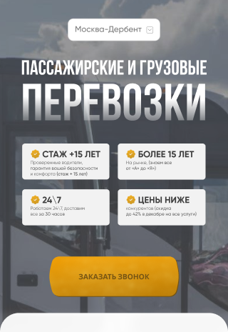 Мы специализируемся на пассажирских и грузовых перевозках между Москвой и Дербентом (8 городов) или обратно